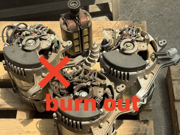 El gran impacto de la corriente hace que el voltaje del terminal del generador caiga instantáneamente (>20%) y el AVR (regulador automático de voltaje) aumenta a la fuerza la corriente de excitación para mantener el voltaje. El devanado de excitación del rotor se sobrecalienta → cortocircuito entre vueltas del rotor → distorsión del campo magnético → desequilibrio de corriente del estator.
